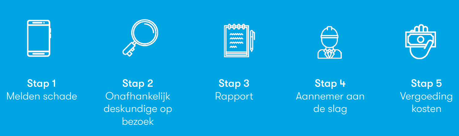 De aannemer neemt contact met je op over de herstelwerkzaamheden. Aan de hand van het rapport herstelt de aannemer de schade.