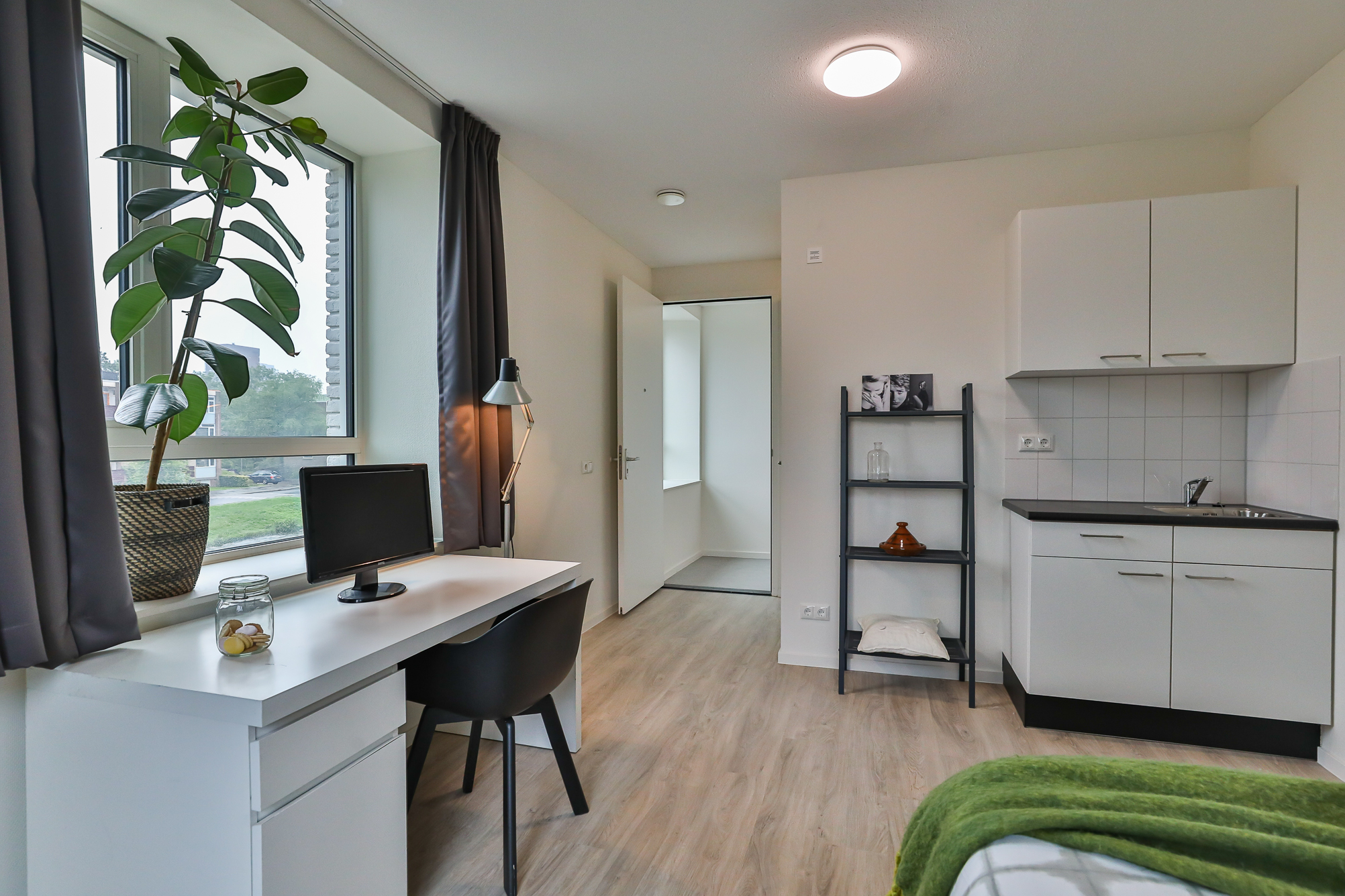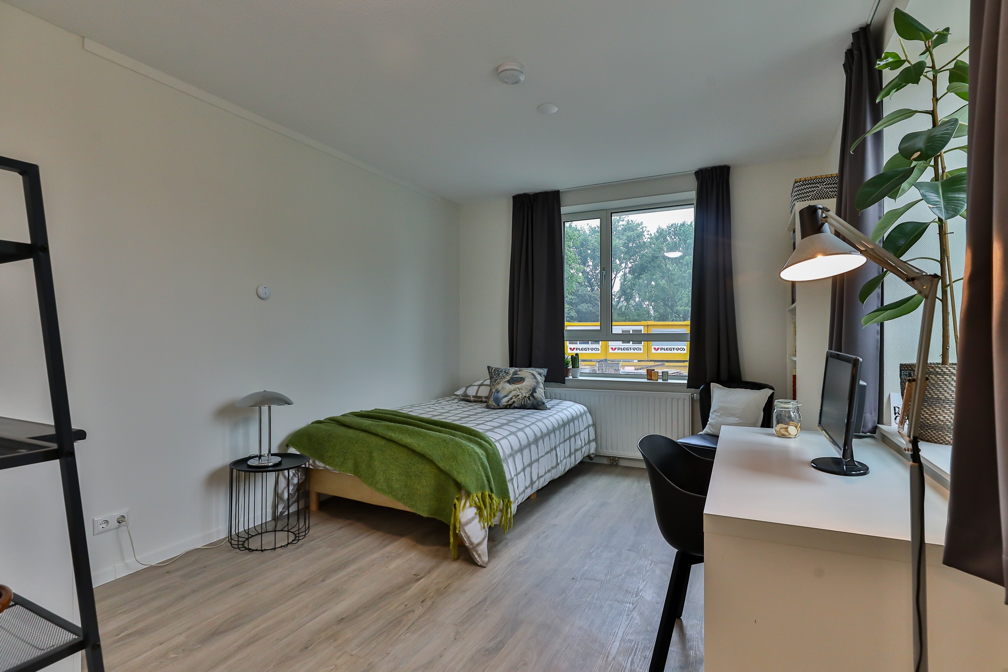We hebben één kamer alvast ingericht, zodat nieuwe huurders een beeld krijgen wat er qua inrichting mogelijk is.