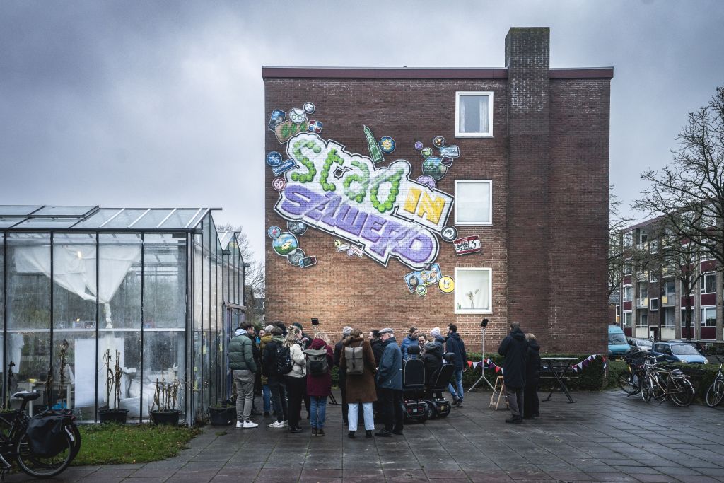 Graffiti kunstwerk gemaakt met bewoners Selwerd