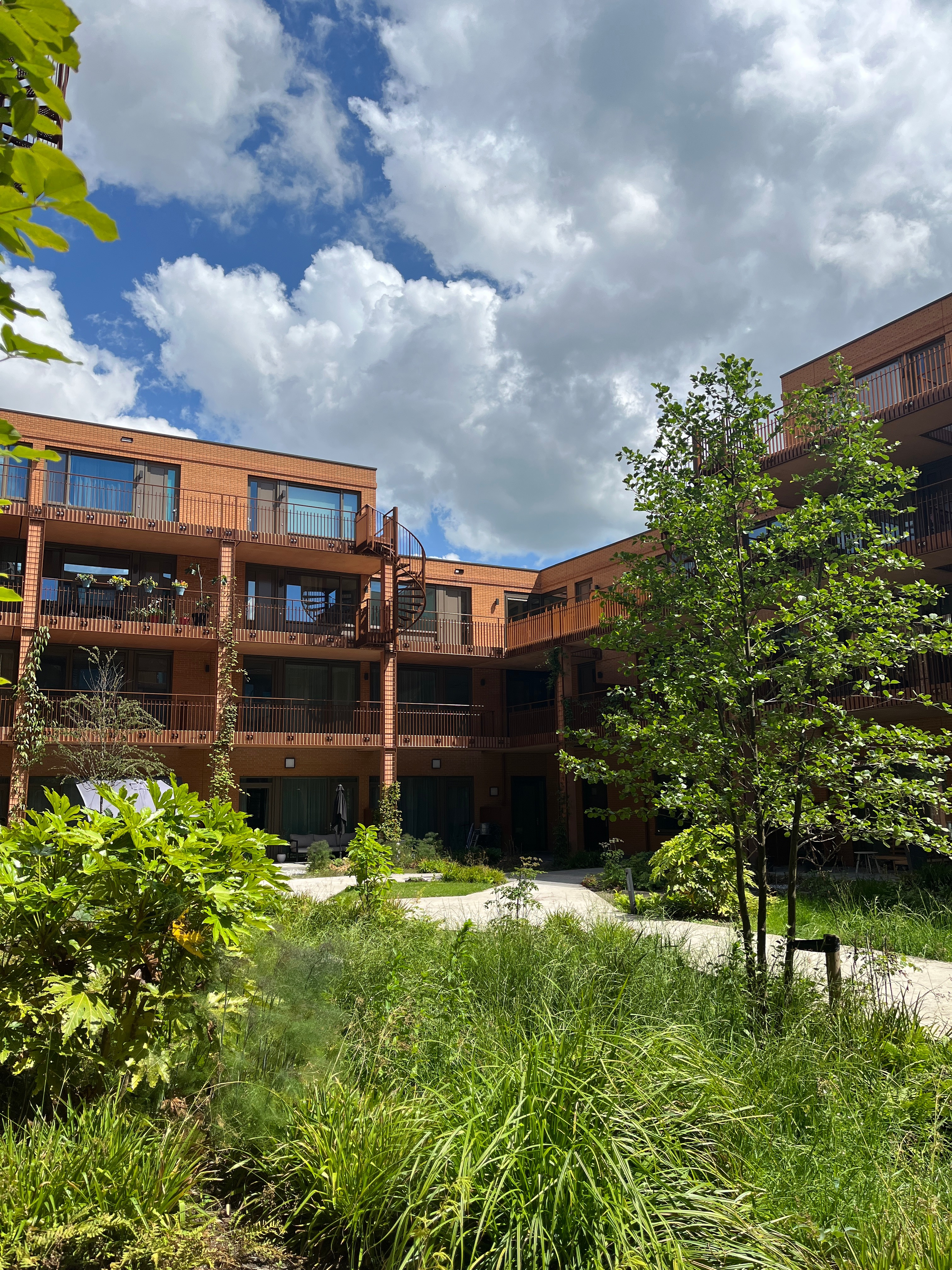 In de gezamenlijke binnentuin rennen kinderen met een bal rond, drink je een kop koffie met de buurvrouw en groet je elkaar terwijl je de planten water geeft. Doordat je elkaar ziet, voelt de buurt vertrouwd. Je kent en helpt elkaar.