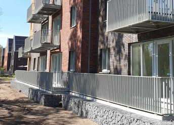 De woningen op begane grond beschikken over een terras dat wordt afgeschermd met een ijzeren hekwerk en schanskorf. Het onderhoud hiervan is voor Nijestee.