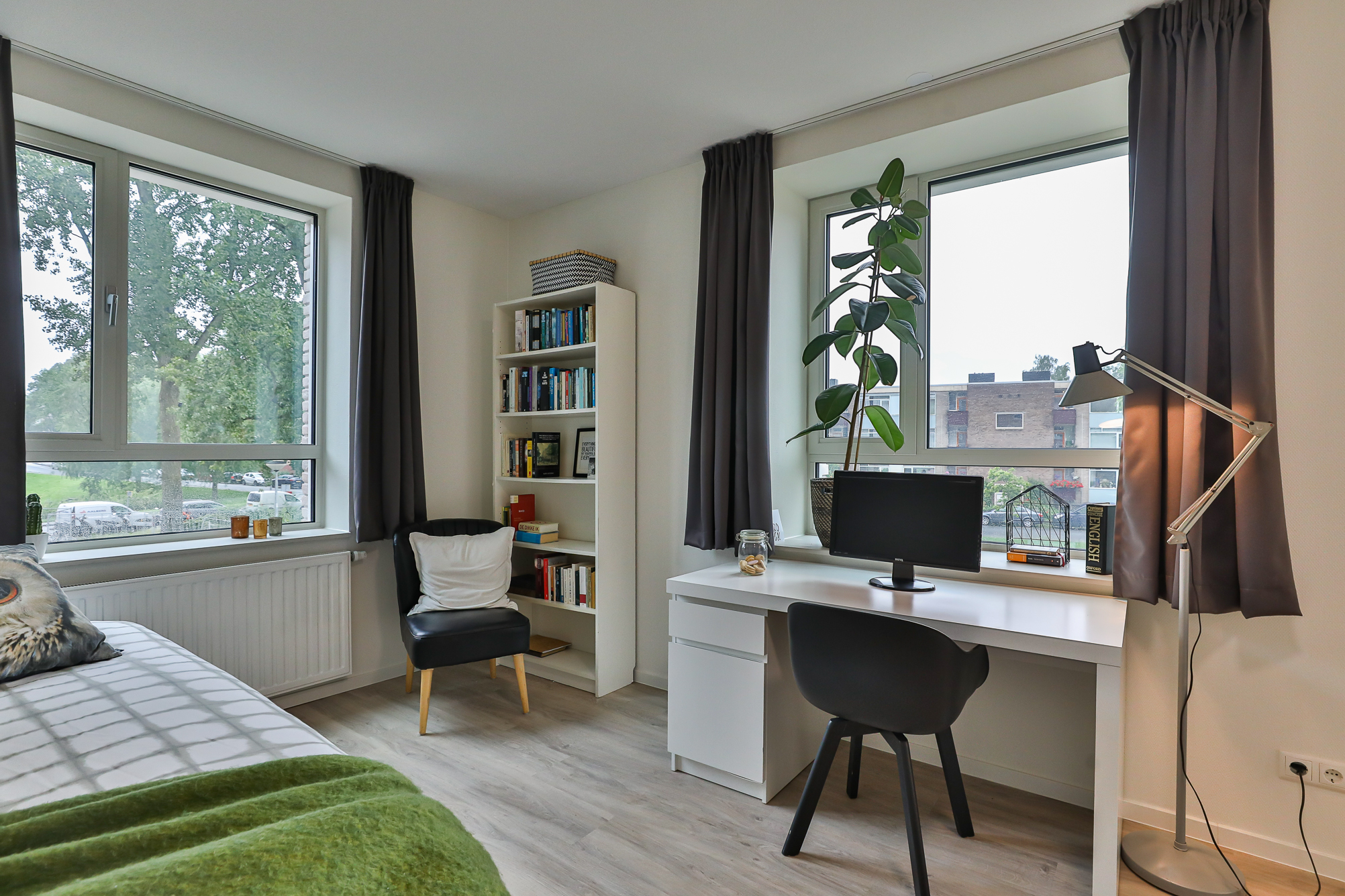 We hebben één kamer alvast ingericht, zodat nieuwe huurders een beeld krijgen wat er qua inrichting mogelijk is.