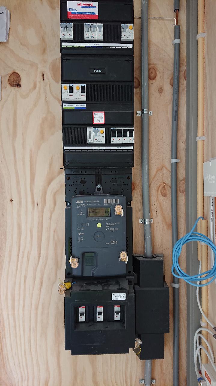 In de meterkast zit: