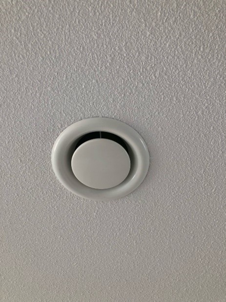 In de woonkamer, keuken en alle slaapkamers zitten toevoerpunten in het plafond (zie afbeelding hieronder). Deze zorgen voor warme verse lucht en zijn aangesloten op de WTW. In de badkamer, toilet en keuken zitten de afvoerpunten van de vervuilde lucht. Deze toe- en afvoerpunten mogen niet verwijderd of aangepast worden.